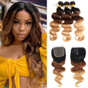 Colored Bundles With Closure Body Wave Brazilian Human Hair Weave Bundles T Lace Closure Remy Ombre Brown Straight Extension