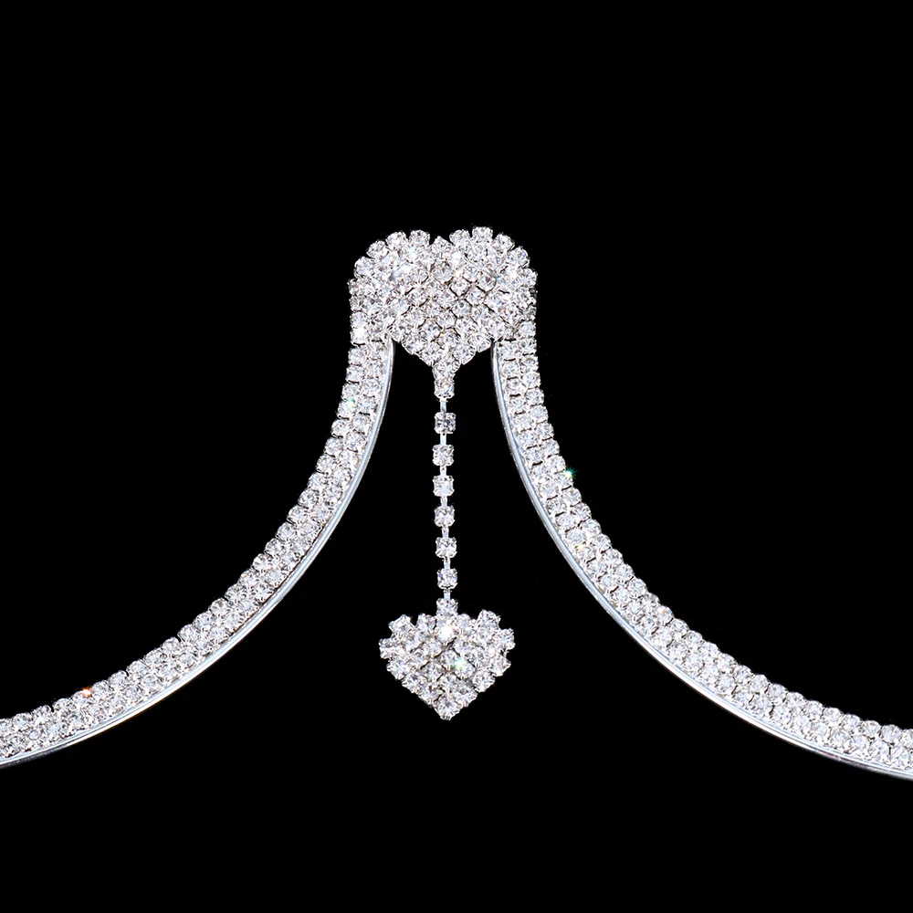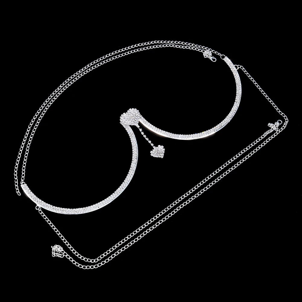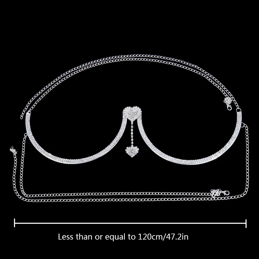 Double Heart Pendant Crystal Chest Bracket Bras Chain Body Jewelry For Women Rhinestone Body Chain Harness Sexy Femme Party Rave