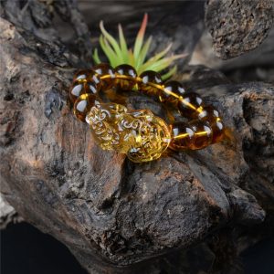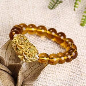 Feng Shui Yellow Pi Yao Pi Xiu Bracelet Bead for Wealth Luck 10mm
