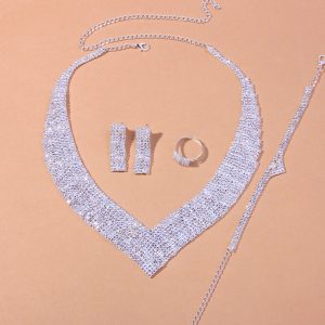 Luxury Hollow Rhinestone Necklace Earring Set Jewelry for Women