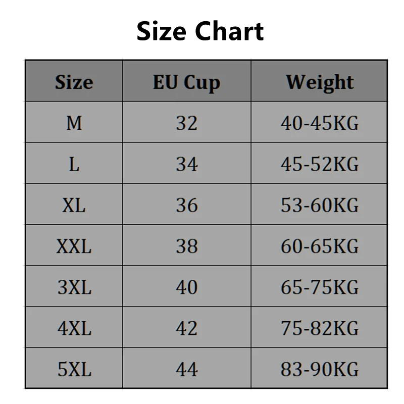 | Cup Size | l, XL, XXL, XXXL, M, 4XL, 5XL |