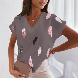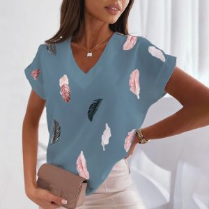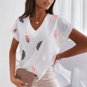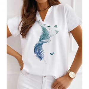 Short Sleeve Tops Tees Feather Graphics printed.