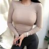 Cotton Long Sleeves High Elasticity Breathable Sexy Thin T-shirt