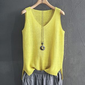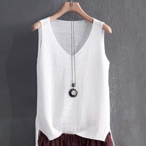 Sleeveless Knitted Blouse Shirt Women Clothes V-neck Blouse