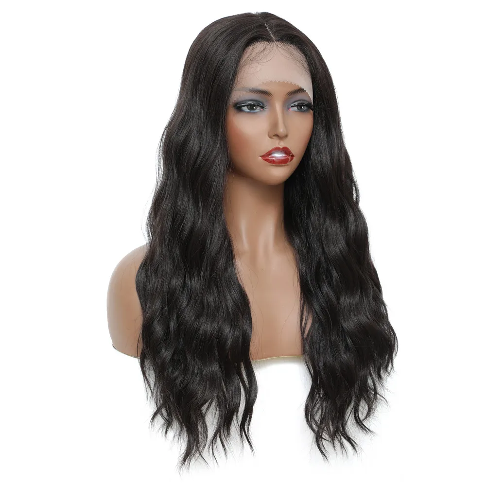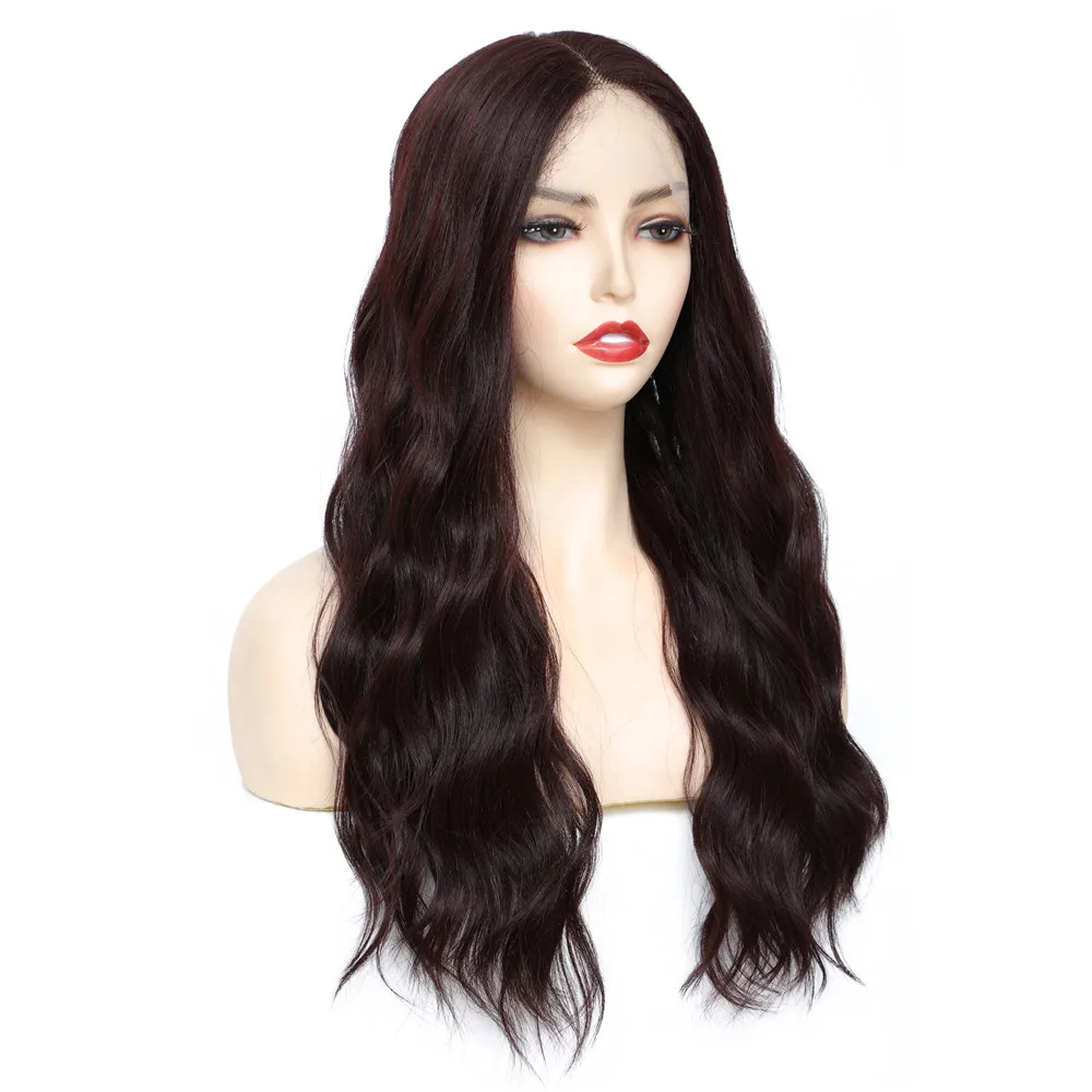 Synthetic Lace Wigs Ombre Brown Color Long Natural Wave Middle Free Part Hair Soft Wig For Women Heat Resistant Fiber